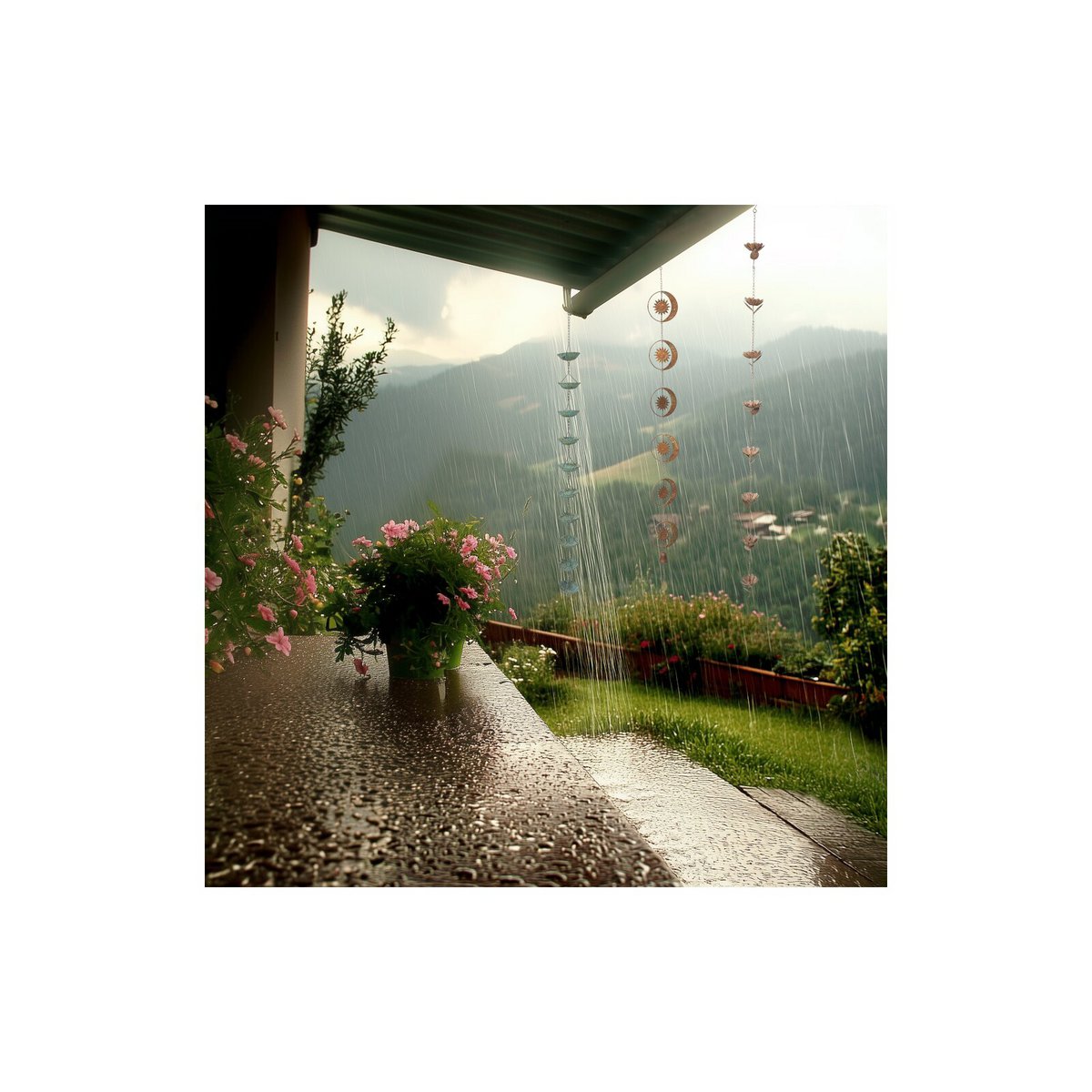 De regenketting “Vogel Bel” brengt leven in uw tuin met zijn charmante design en combineert vogelelementen met belelementen. Kenmerken: -Materiaal: Robuust, weerbestendig materiaal -Ontwerp: Vogels zitten op kleine belletjes waarlangs het regenwater wordt geleid -Lengte: 178 cm -Kleur: Bronskleur