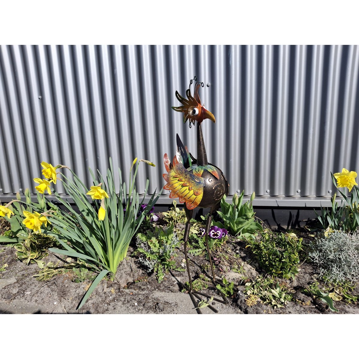 De vogel heeft een afmeting van ongeveer 25x23x73 cm cm en weegt 1100 gram. De basis laag wordt voorzien van poedercoating en daarna wordt het item gekleurd. Dat maakt dat de vogel geschikt is voor buiten. De vogel is niet geschikt voor kinderen jonger dan 3 jaar. Let op dat de kleur van het product mogelijk iets kan afwijken door lichteffecten tijdens de fotografie en verschillende beeldscherminstellingen