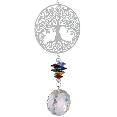 Spinner met Levensboom en kristal glas eronder. De lengte is gemeten vanaf de ophangdraad tot en met de onderkant van het glas.